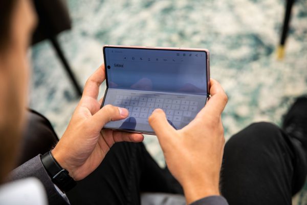 „Taip pasaulį išvydo ir „Samsung“ sulenkiamas telefonas „Galaxy Z Fold2“. Sprendimai, pritaikyti kuriant šį telefoną, leido sugretinti dvi iš pirmo žvilgsnio nesuderinamas savybes – didelį ekraną ir kompaktiškumą“, – pasakoja B. Barkauskienė.